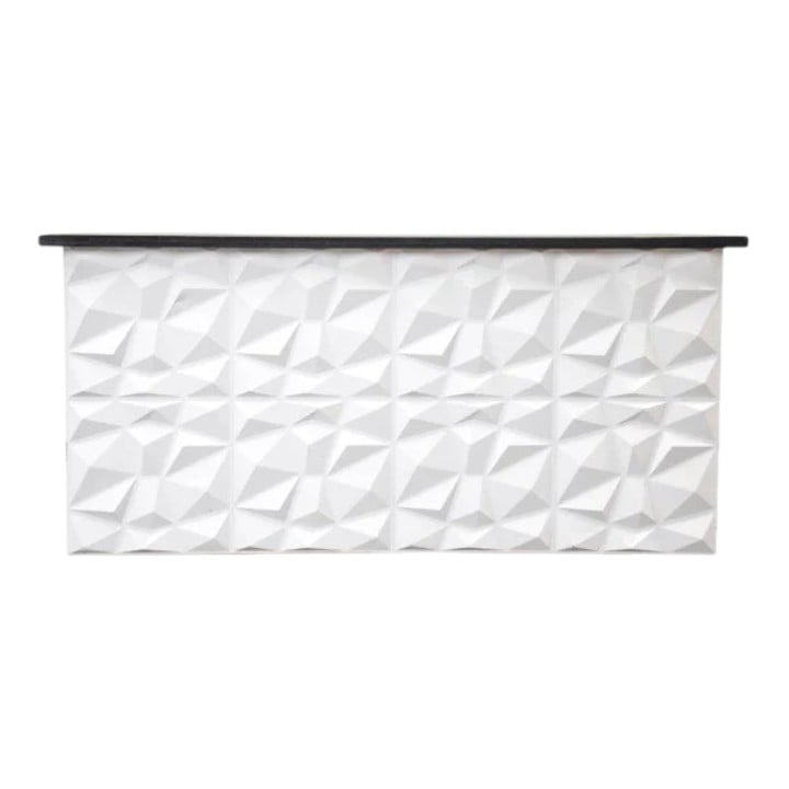The Geometric White 8' Bar offers a modern event bar design with a patterned geometric front that adds visual interest while maintaining a clean, neutral look. Its white finish keeps the bar light and adaptable, making it easy to style across a range of event themes. With an 8-foot length, this bar provides ample service space for weddings, corporate events, social gatherings, and more.